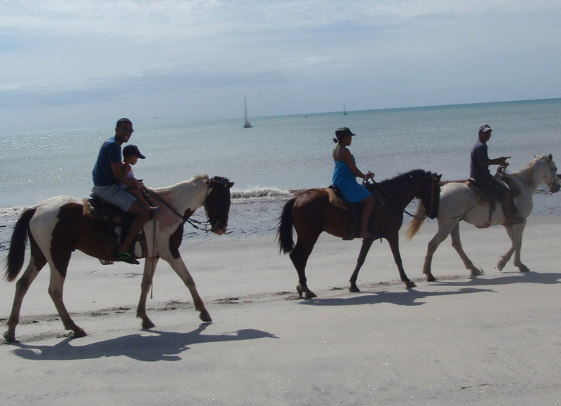 Ride our gentle, well mannered horses and enjoy a 1 or 2 hours, guided tour along the beach and hills. Ask for the special horseback riding tour in a private field. We recommend long pants, tennis shoes and sunblock.